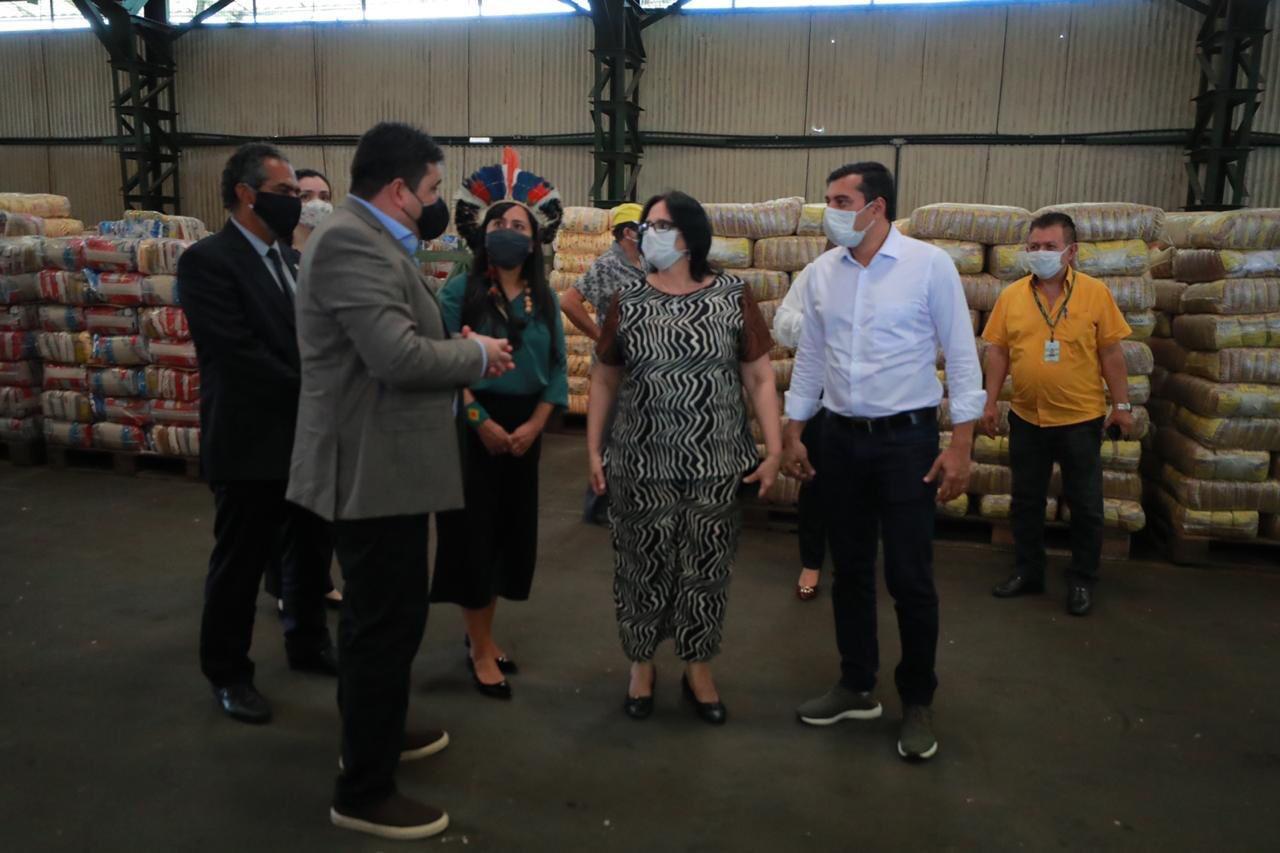 A solenidade de entrega foi realizada na sede da Companhia Nacional de Abastecimento (Conab), localizada no Distrito Industrial, onde também estiveram presentes lideranças indígenas do Amazonas. Em seguida, o governador e a comitiva federal visitaram o armazém da Conab, onde são montadas as cestas básicas.