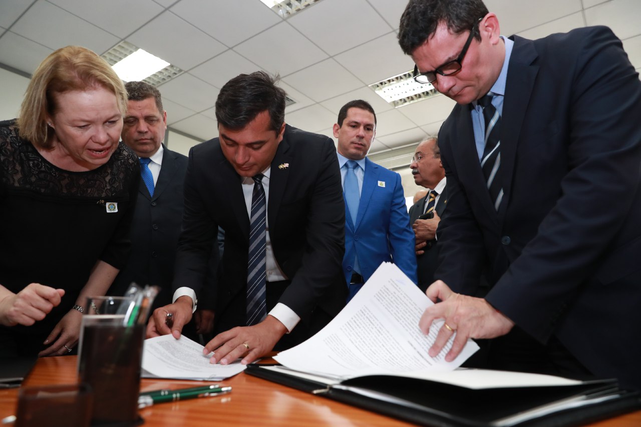 Outros estados – Além de Wilson Lima e Sérgio Moro, participaram da solenidade o governador de Rondônia, Marcos Rocha; vice-governador do Acre, Wherles Fernandes; secretário de Segurança Pública do Pará, coronel Ualami Sialho Machado; secretário de Segurança Pública do Amapá, coronel José Carlos Correa e secretário de Segurança Pública de Roraima, coronel Olivan Júnior.