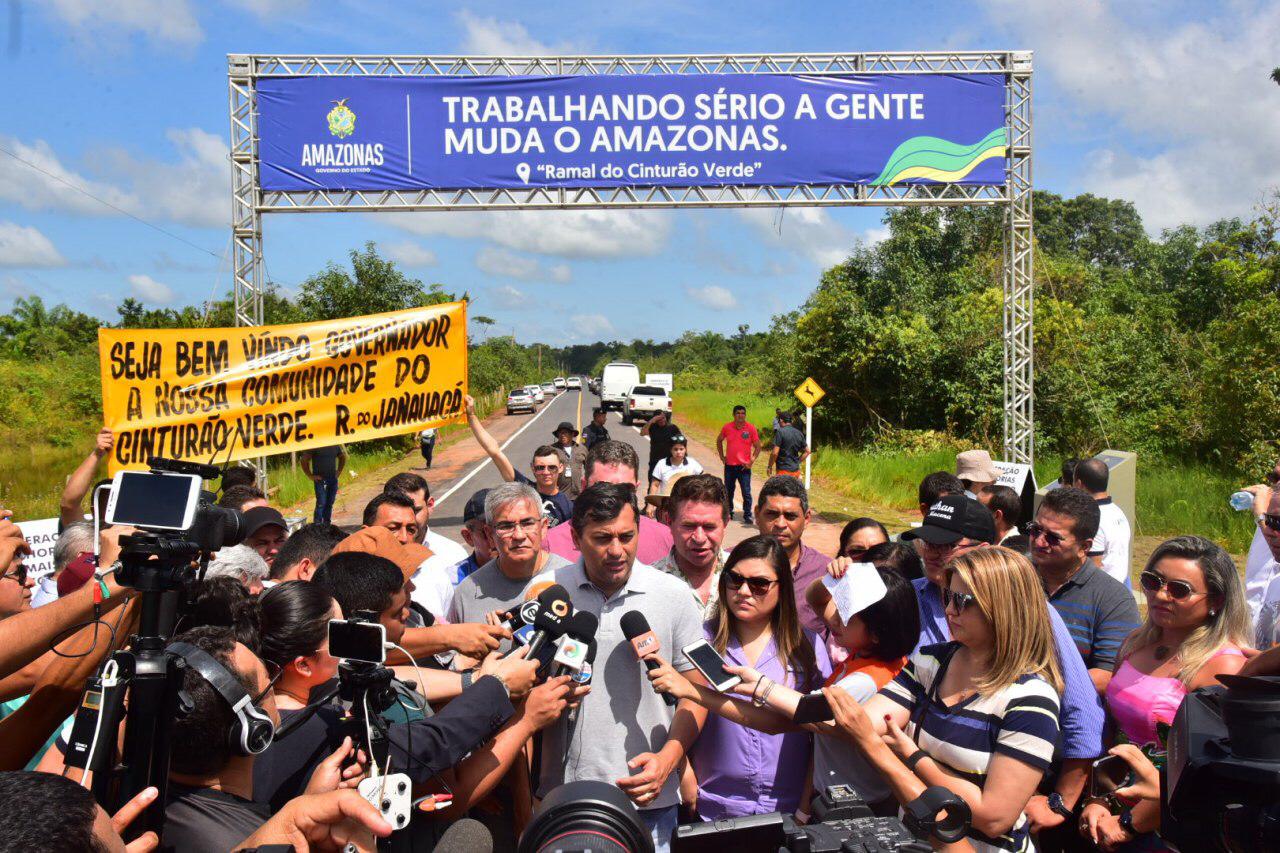 Careiro Castanho – AM| O governador do Amazonas, Wilson Lima, entregou, neste sábado (15/02), o Ramal do Cinturão Verde, no Careiro Castanho (a 88 quilômetros de Manaus). A obra, executada pela Secretaria de Estado de Infraestrutura e Região Metropolitana de Manaus (Seinfra), melhora o escoamento agrícola e a mobilidade das famílias da região. Localizado no Km 83 da BR-319, o ramal possui 9,5 quilômetros de extensão.