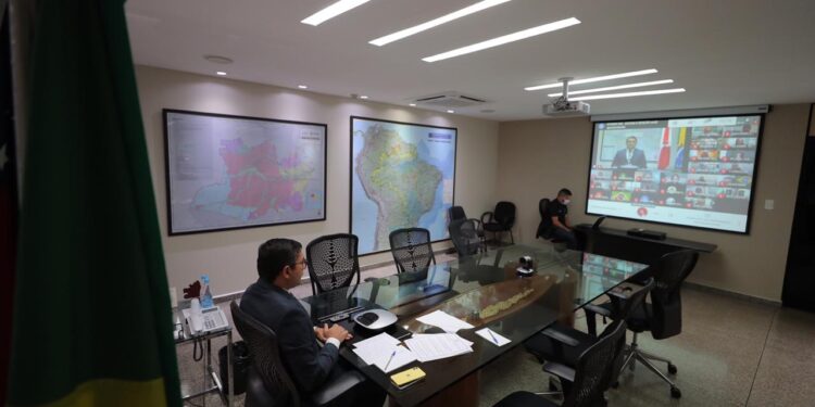 MANAUS-AM| O governador Wilson Lima participou, na manhã desta quarta-feira (17/06), por meio de videoconferência, da cerimônia de posse do procurador-geral do Ministério Público de Contas do Amazonas (MPC-AM), João Barroso de Souza, para novo mandato no biênio 2020-2022.