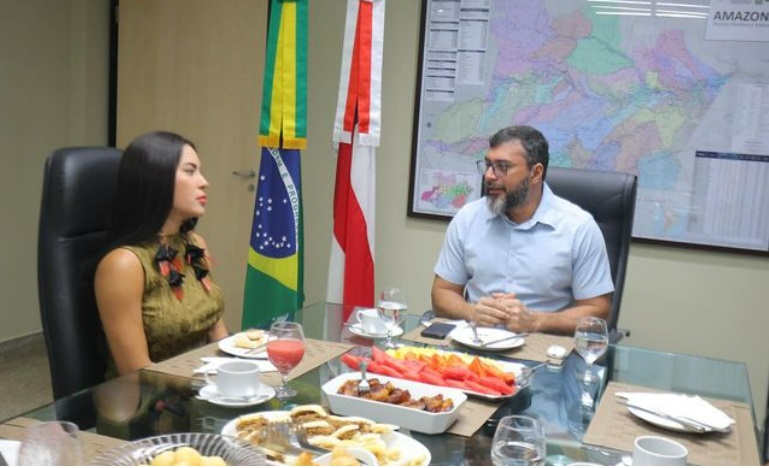 MANAUS – Isabelle Nogueira foi recebida nesta segunda-feira (22) pelo governador Wilson Lima (UB) na sede do governo, na Compensa, zona Oeste, para um café regional com o chefe do Executivo. O governador publicou um vídeo com a cunhã do Garantido e destacou o papel dela para promover o Amazonas. “Começamos a semana recebendo a