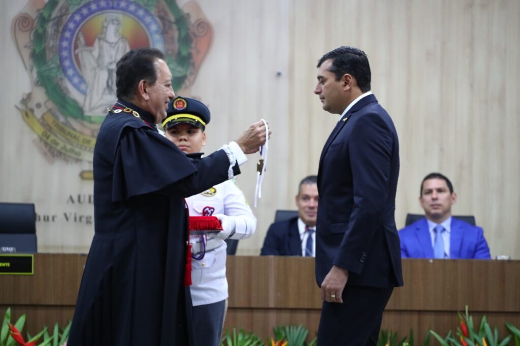 “Eu me sinto muito honrado por estar recebendo essa honraria aqui do Tribunal de Justiça do Amazonas, e aqui vale ressaltar que o trabalho que a gente vem desempenhando não é um trabalho só meu. Comigo tem a minha família, tem a minha esposa, os meus filhos, a minha equipe, as pessoas que aceitaram esse desafio de conduzir os destinos dos brasileiros que moram aqui no estado do Amazonas”, disse Wilson Lima.