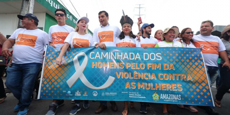 Manaus – O governador do Amazonas, Wilson Lima, participou, na manhã desta sexta-feira (06/12), da Caminhada dos Homens pelo Fim da Violência contra Mulheres, promovida pela Secretaria de Estado de Justiça, Direitos Humanos e Cidadania (Sejusc) como parte da campanha “16 dias de Ativismo pelo Fim da Violência contra as Mulheres”. A ação integrou a programação do segundo dia do programa “Muda Manaus”, que acontece até este sábado (07/12) no bairro Amazonino Mendes (Mutirão).