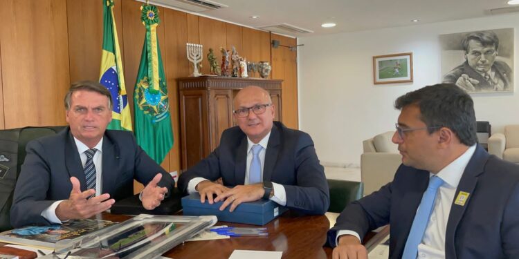 “Estamos aqui em tratativas para discutir a melhor maneira do Amazonas não perder a competitividade para o resto do país. É um benefício a mais para Manaus que é uma área estratégica, a garantia da nossa soberania passa pela Zona Franca de Manaus e jamais nós vamos querer que isso seja ameaçado”, disse Jair Bolsonaro. O coronel Alfredo Menezes, ex-superintendente da Zona Franca de Manaus (Suframa), participou da reunião.