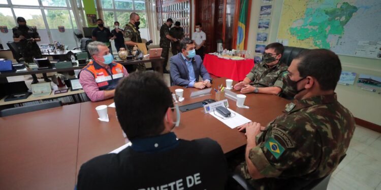 MANAUS – AM | O governador Wilson Lima se reuniu, nesta segunda-feira (15/02), com o general de Exército, Esteban Cals Theophilo Gaspar de Oliveira, comandante do Comando Militar da Amazônia (CMA), para discutir o planejamento logístico e operacional do Plano de Aceleração da Vacinação contra a Covid-19, previsto para iniciar no dia 22 de fevereiro, abrangendo a imunização de pessoas acima dos 50 anos de idade no Amazonas.