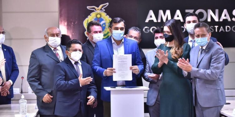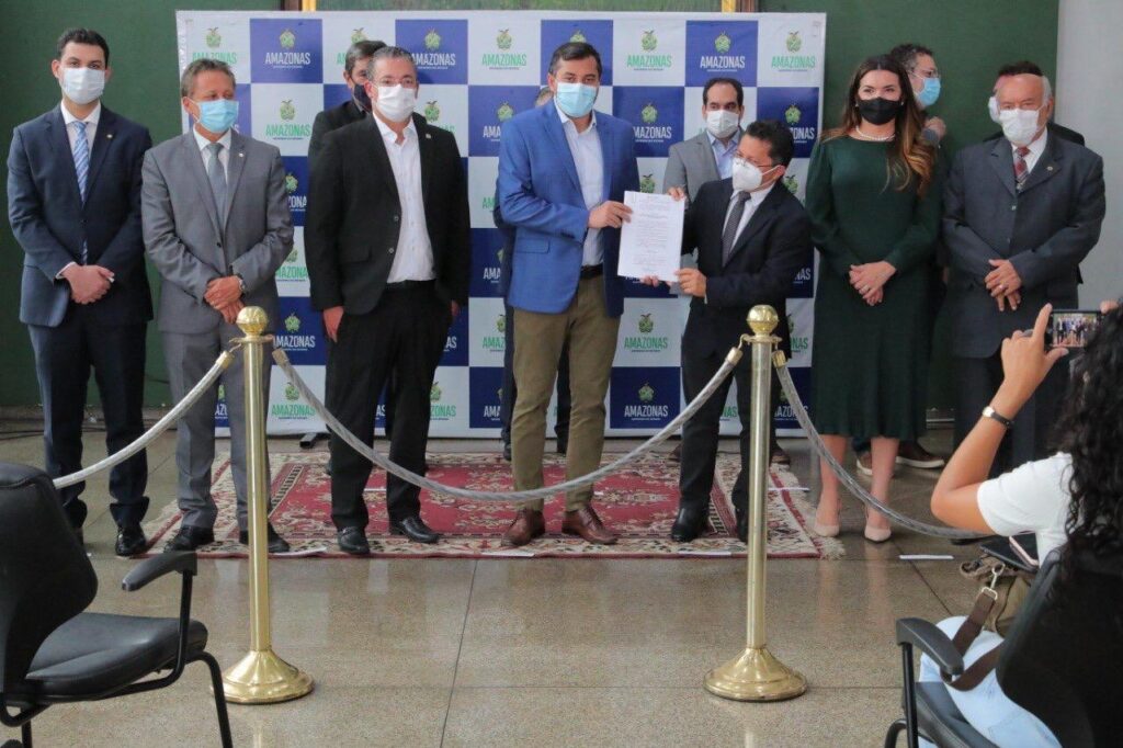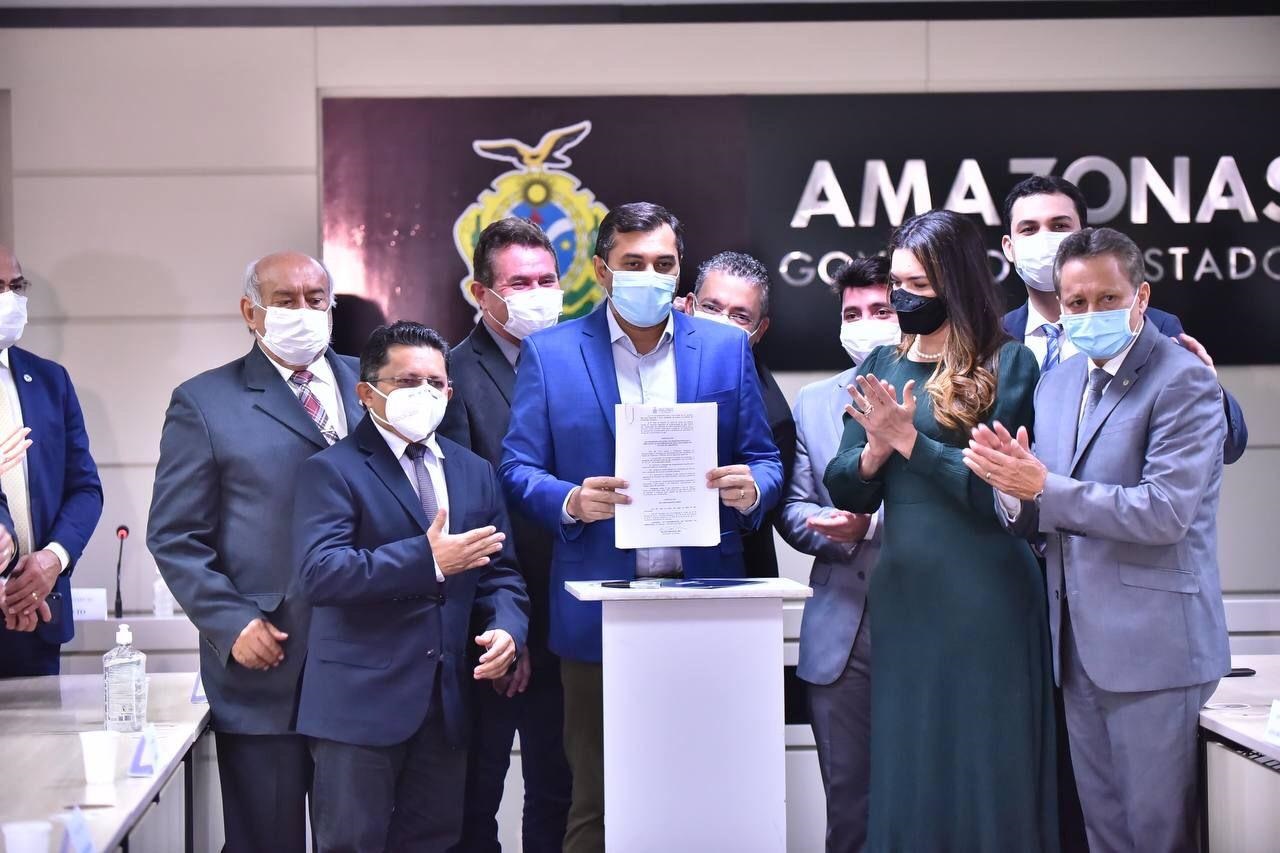 A solenidade de sanção da nova lei ocorreu na sede do Governo, na zona oeste de Manaus, e contou com a presença do deputado Sinésio Campos, presidente da Comissão de Geodiversidade, Recurso Hídricos, Minas, Gás, Energia e Saneamento da ALEAM, e mais dez deputados e deputadas: Alessandra Campelo, Terezinha Ruiz, Josué Neto, Adjuto Afonso, Saulo Viana, Carlinhos Bessa, Cabo Maciel, João Luiz, Belarmino Lins e Dr. Gomes.