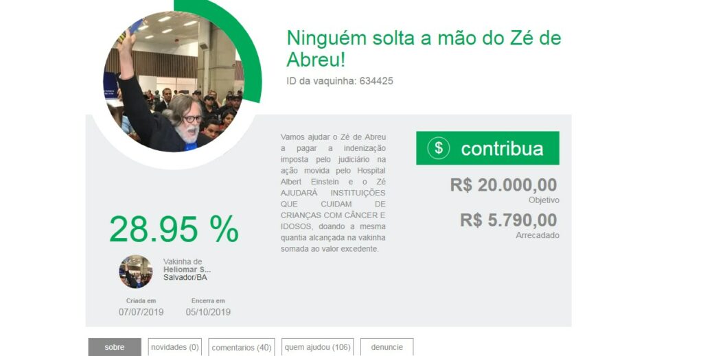 O Hospital Israelita Albert Einstein havia requerido o valor de 100.000 reais, por considerar que a publicação do ator afetou a reputação da instituição e ofendeu a comunidade judaica e evangélica. Uma vaquinha virtual foi criada por fãs e amigos com o objetivo de ajudar o ator a pagar a indenização (confira abaixo).